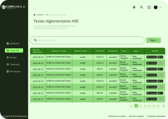 Le logiciel Compliance rationalise le processus d'évaluation, en utilisant une méthodologie avancée de "filtration" des textes. L'analyse automatisée vise à améliorer le positionnement de votre HSE en égard de la réglementation marocaine. Obtenez des analyses et des tableaux de bord en temps réel.